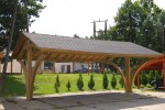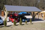 Dwustanowiskowa wiata garażowa Arizona II z drewna giętego najlepiej sprawdzi się przy domu jednorodzinnym. Niewielka powierzchnia zabudowy wiaty pozwala na budowę bez pozwolenia budowlanego.