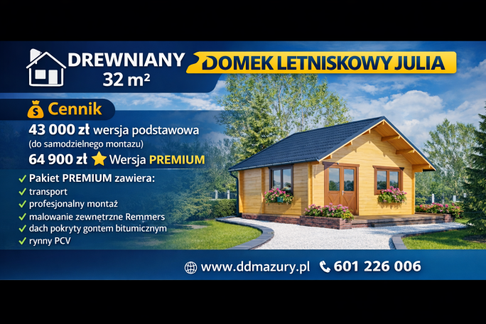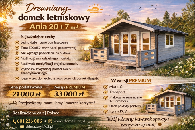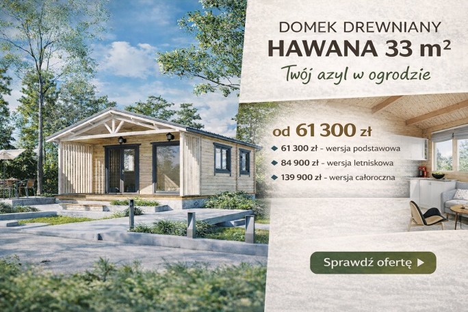 Cena : 23 350,00 zł 16 900,00 zł Opcje dodatkowe Transport 1800 zł Ceny opcji dodatkowych zawierają w sobie koszt robocizny oraz koszt materiałów. W razie pytań prosimy o kontakt. Nowoczesny drewniany domek ogrodowy Oriental 5 to funkcjonalna i estetyczna konstrukcja, która doskonale sprawdzi się jako miejsce wypoczynku w ogrodzie, przydomowe biuro lub komfortowy domek dla gości. Niewielka powierzchnia zabudowy … Czytaj dalej Drewniany domek z płaskim dachem Oriental 5 13,5 m2