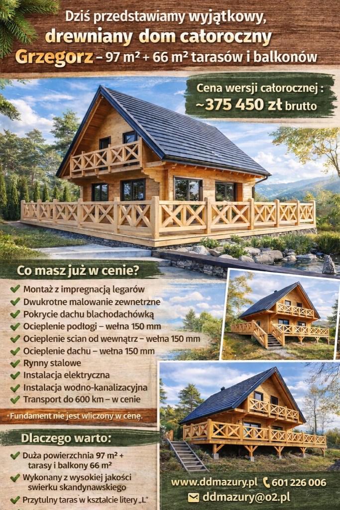 Cena podstawowa domku: 2990 zł Opcje dodatkowe Transport wyliczany indywidualnie. Ceny opcji dodatkowych zawierają w sobie koszt robocizny oraz koszt materiałów. W razie pytań prosimy o kontakt. Drewniany domek dla dzieci Jaś to wyjątkowe miejsce, które z łatwością stanie się centrum dziecięcych zabaw w ogrodzie. Atrakcyjny wygląd oraz szerokie możliwości aranżacji sprawiają, że domek doskonale sprawdzi … Czytaj dalej Drewniany domek dla dzieci Jaś ZESTAW