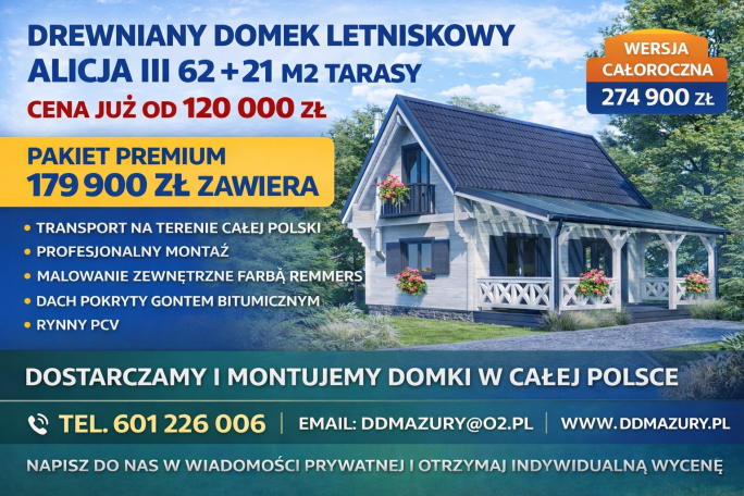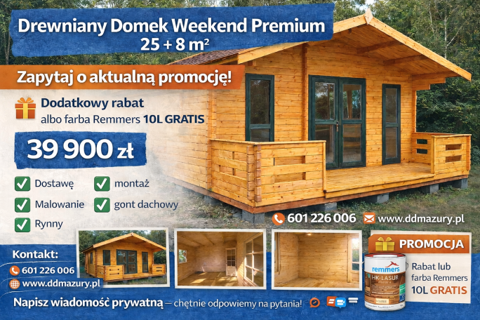 Cena podstawowa domku: 17 900 zł Slide Plus + 3500 zł Opcje dodatkowe Transport 1800 zł Ceny opcji dodatkowych zawierają w sobie koszt robocizny oraz koszt materiałów. W razie pytań prosimy o kontakt. Nowoczesny drewniany domek ogrodowy Ines SLIDE to doskonałe rozwiązanie jako miejsce relaksu w ogrodzie, przydomowe biuro lub komfortowy domek dla gości. Niewielka powierzchnia … Czytaj dalej Drewniany domek ogrodowy Ines SLIDE 11,1 m2