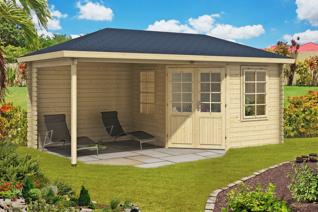 Drewniany domek pięciokątny Catania to wyjątkowa konstrukcja, która może stać się prawdziwym centrum wypoczynku w ogrodzie. Doskonale sprawdzi się zarówno w przydomowym ogrodzie, jak i na działce w Rodzinnych Ogrodach Działkowych (ROD). Dzięki odpowiedniej powierzchni zabudowy domek można wybudować bez konieczności uzyskania pozwolenia na budowę.