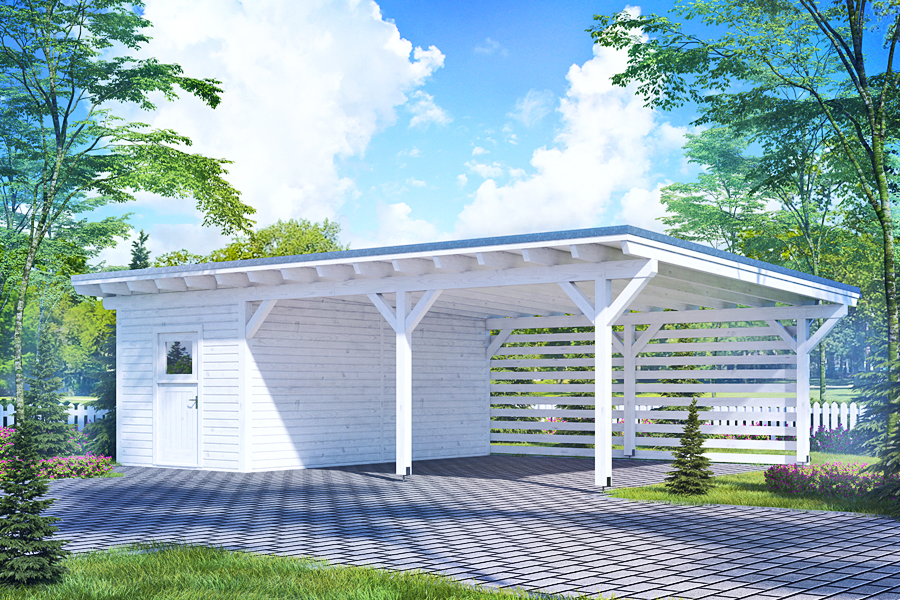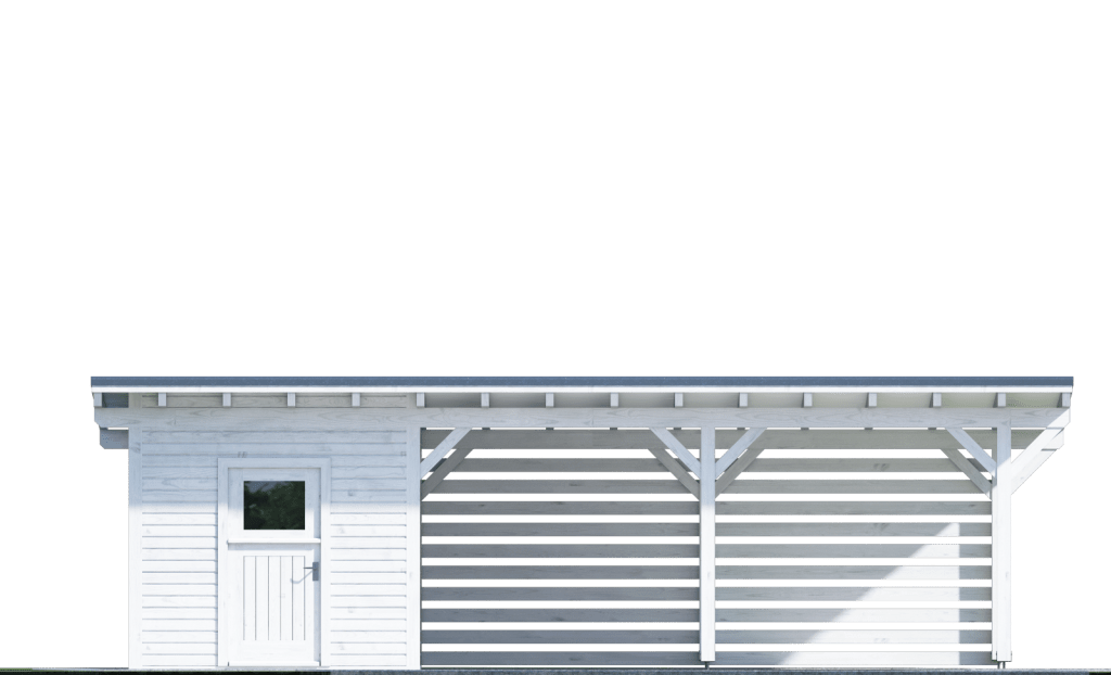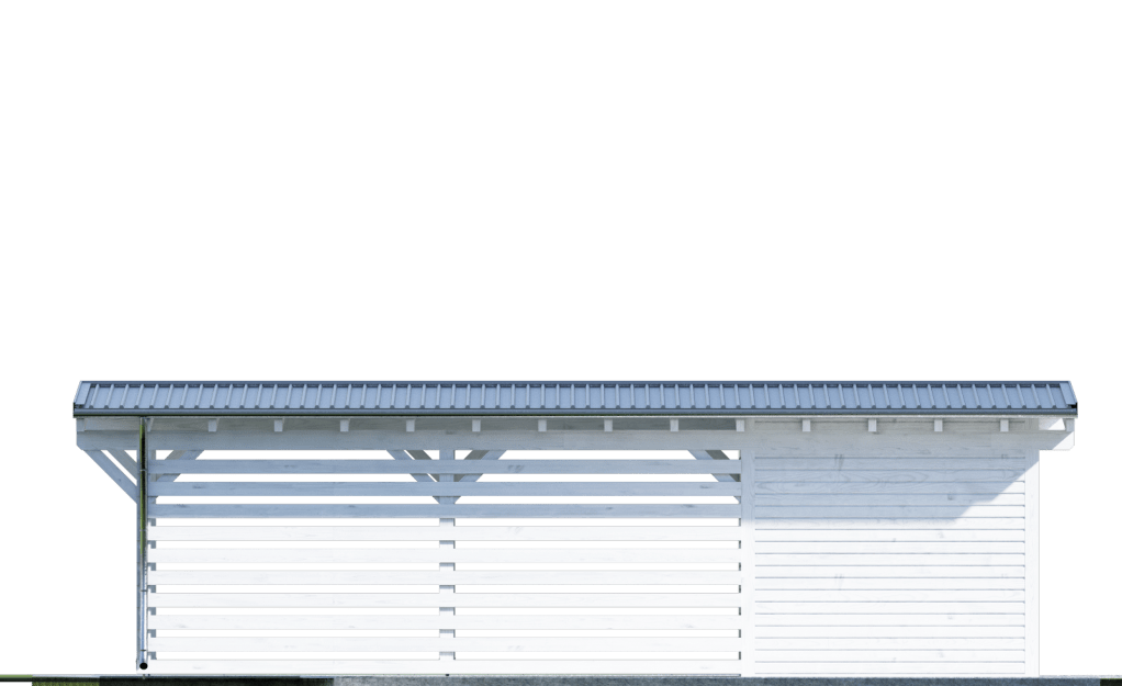 Zadaszona część przeznaczona na samochody oferuje światło wjazdu o szerokości 572 cm i wysokości 246 cm, co zapewnia wygodne parkowanie. Dodatkową ochronę pojazdów stanowi ażurowa, częściowo deskowana ścianka tylna, która osłania przed wiatrem i opadami.