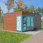 Drewniany, całoroczny domek Julia najlepiej sprawdzi się w roli niewielkiego biura lub punktu handlowego. Domek został zbudowany na planie kwadratu, a jego niewielka powierzchnia zabudowy pozwala na budowę bez pozwoleniabudowlanego.