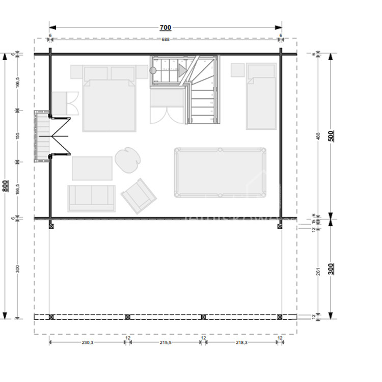 Drewniany i dobrze wykończony domek całoroczny dla rodziny. Składająca się z trzech pomieszczeń, niewielkiego balkonu oraz wyposażona potężny, w pełni zadaszony półprzezroczystym poliwęglanem komorowym taras Alicja III posiada niesamowite zdolności adaptacyjne. Domek w podstawowej wersji pozwoli komfortowo mieszkać całorocznie. Stabilna konstrukcja umożliwi dopasowanie budynku do własnych potrzeb, tworząc z każdego domku indywidualny i osobisty projekt. Wymiary sprawiają, że wzniesienie domku jest możliwe bez zezwoleń budowlanych.