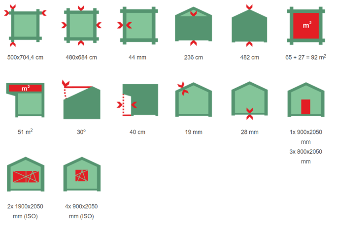 - dwa jednoskrzydłowe okna nieotwieralne 900 × 2050 mm.