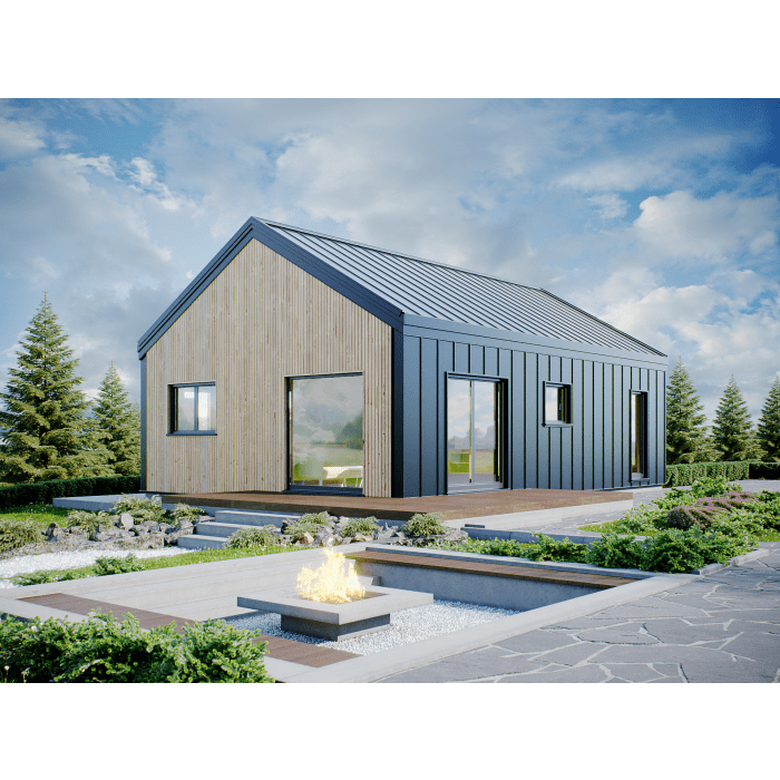 Rio to przyciągający wzrok, nowoczesny model o nowoczesnym, parterowym, przestronnym kształcie stodoły, który doskonale pasuje do dzisiejszych standardów dla tego typu domów. Na powierzchni 69 m2 nawet kilkuosobowa rodzina może komfortowo spędzić czas.
