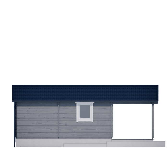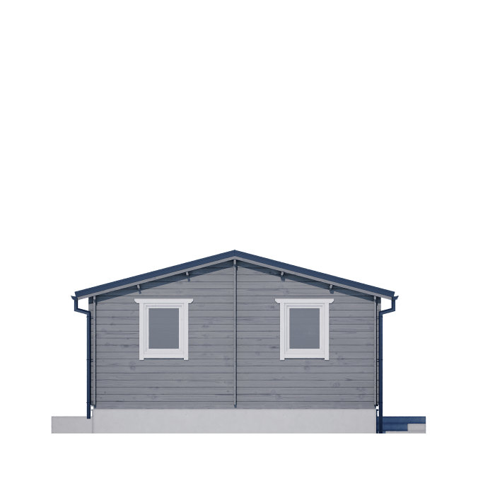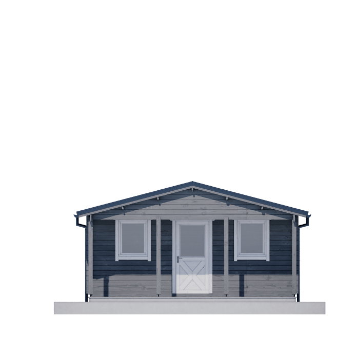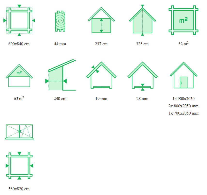 Wymiary zewnętrzne domu bez wystających elementów i ze schodkowym dachem to 580×580 cm, co daje powierzchnię zabudowy 32 m2, pozwalającą na budowę bez pozwolenia na budowę. Dom z zadaszeniem nad tarasem i nadstawkami ma wymiary 600×800 cm i powierzchnię użytkową wnętrza 32 m2. Z tarasem na dachu o powierzchni do 12 m2 idealnie nadaje się na relaksujące letnie spotkania. Jeśli nie masz deski tarasowej, możesz samodzielnie dobrać idealne wykończenie tarasu. Ściany domu wykonane są z litych bali świerkowych o grubości 44 mm, zapewniających stabilność konstrukcji. Ten duży dach dwuspadowy posiada 240 cm wypust, który doskonale chroni wejście przed deszczem, nadając budynkowi charakteru.