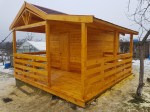 Drewniany domek Mazury A sprawdzi się zarówno jako domek rekreacyjny na własnej działce jak i jako domek letniskowy na wynajem w ośrodku wczasowym. Rozkład pomieszczeń oraz najważniejszych elementów domku ułatwiają dowolną aranżację każdej przestrzeni, a wymiary części mieszkalnej pozwalają na budowę bez pozwolenia budowlanego.