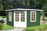 Pięciokątny drewniany domek ogrodowy Aruba z powodzeniem może być przeznaczony na domek wypoczynkowy, budynek gospodarczy lub małe biuro. Nieduża powierzchnia zabudowy dopuszcza budowę bez pozwolenia.