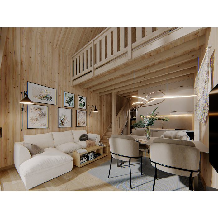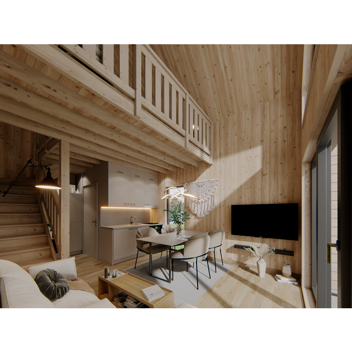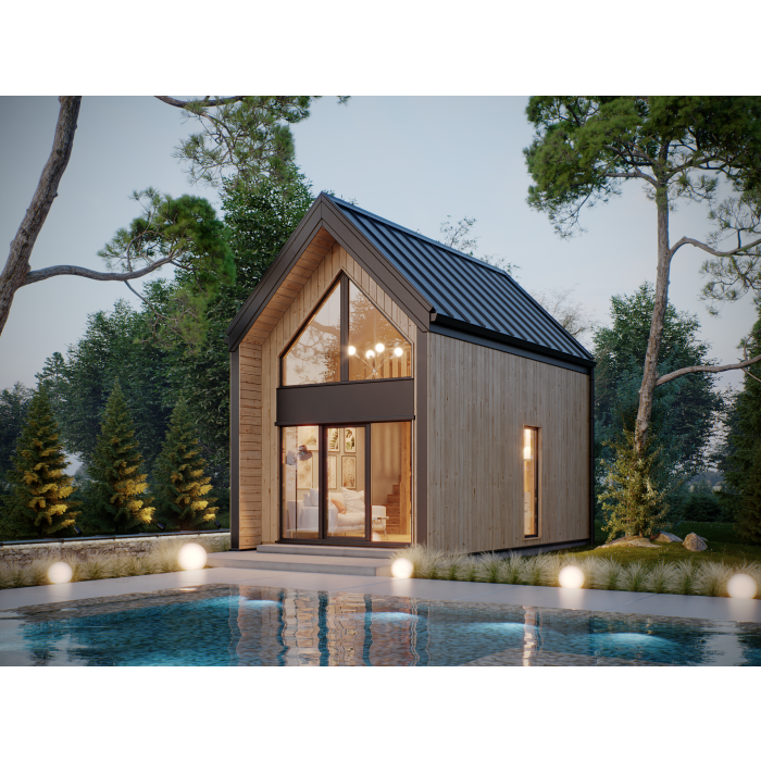 DREWNIANY DOMEK SZKIELETOWY Z ANTRESOLĄ 25 M2