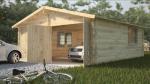 Dwustanowiskowy, wykonany z bala świerkowego garaż E doskonale wpasuje się w każdą przestrzeń. Dzięki powierzchni zabudowy poniżej 35m2 garaż można wybudować bez pozwolenia budowlanego.