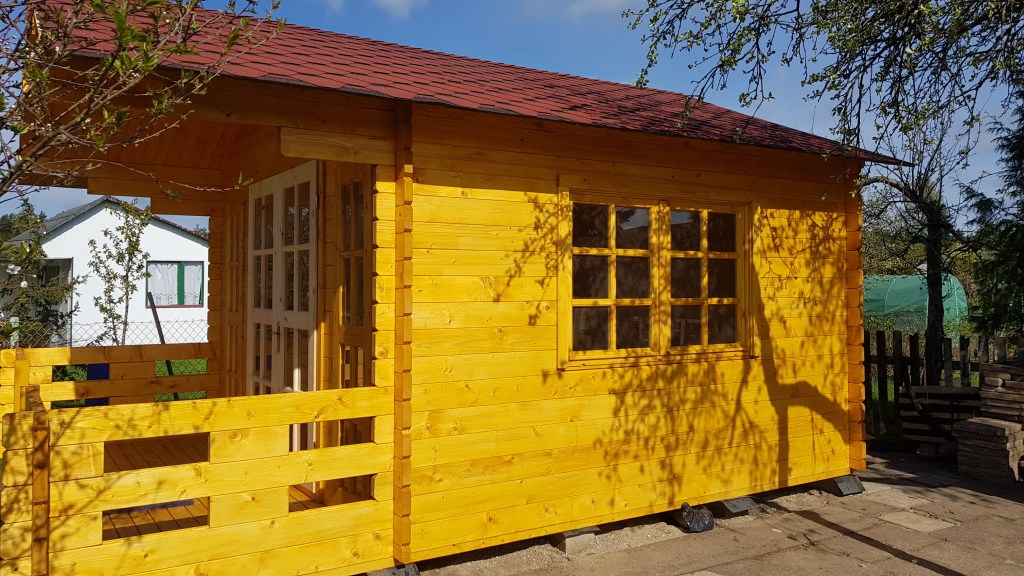 Drewniany domek letniskowy Igor I najlepiej wpasuje się w rolę niewielkiego domku gościnnego czy domku rekreacyjnego na działce w rodzinnych ogródkach działkowych. Dzięki niewielkiej powierzchni zabudowy części mieszkalnej domek można wybudować bez pozwolenia budowlanego.