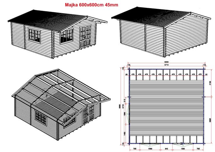 Całkowita powierzchnia użytkowa domku wynosi 32,6 m2 przy wymiarze wewnętrznym 571×571 cm. Wymiar zewnętrzny konstrukcji wynosi 600×600 cm + 100 cm wypust dachu od frontu budynku. Duża powierzchnia wewnętrzna pozwala na modyfikację projektu domku i podzielenie go ściankami działowymi na pomieszczenia. Użyty do konstrukcji wykonany ze świerku skandynawskiego lity 45 mm balik czyni z niego bardzo stabilną i wytrzymałą konstrukcję, która przy odpowiedniej konserwacji posłuży długie lata.