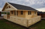 Sara to duży drewniany domek letniskowy na planie prostokąta z tarasem w kształcie litery L. Domek doskonale sprawdzi się jako domek na wynajem w ośrodku wczasowym lub duży domek letni na działce nad jeziorem czy w górach. Trzy pomieszczenia oraz antresola czynią z niego bardzo uniwersalne rozwiązanie umożliwiając dowolną aranżację. Domek można zbudować bez pozwolenia na budowę.